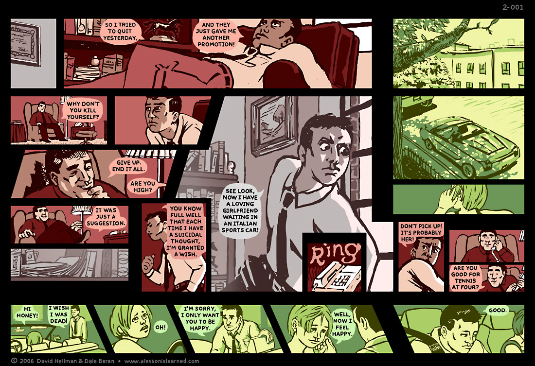 Please visit the Freebies page for a number of tantalizing new items. First, we've got three new wallpapers, each depicting one of the characters introduced in this episode. Second, there's the podcast we posted last week. I didn't make al ot of noise about it because it's an experiment for us and it seemed best to gather some feedback first. It's been well-received, with an occasional caveat that it gets better than it begins. Please check it out, and let us know what you really think in the forum.